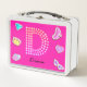 Hot Pink Letter D Monogram Girly Back To School Metal Lunch Box