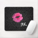 A trendy pink and black mousepad featuring a hot pink lipgloss kiss print against a black leopard print background. Personalise this girly design by adding your monogram initials.