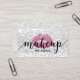 Makeup Artist Pink Lips Modern Silver Sequins Beauty Salon Business Cards.