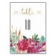 Hot Pink Magenta Floral Elegant Gold Script Hearts Table Number