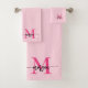 Hot Pink Modern Script Girly Monogram Name Bath Towel Set