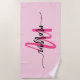 Hot Pink Modern Script Girly Monogram Name Beach Towel