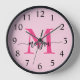 Hot Pink Modern Script Girly Monogram Name Clock
