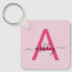 Hot Pink Modern Script Girly Monogram Name Key Ring
