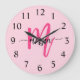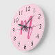 Hot Pink Modern Script Girly Monogram Name Large Clock