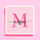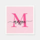 Hot Pink Modern Script Girly Monogram Name Napkin