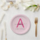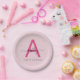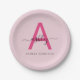 Hot Pink Modern Script Girly Monogram Name Paper Plate
