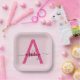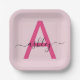 Hot Pink Modern Script Girly Monogram Name Paper Plate