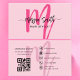 Hot Pink Modern Script QR Code Monogram Name Business Card