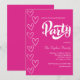 Hot Pink Modern White Hearts Valentine's Day Party Invitation