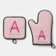Hot Pink Monogram Girl's Kitchen Script Oven Mitt & Pot Holder Set