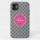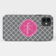 Hot Pink Monogram Grey Diamond Pattern Case-Mate iPhone Case