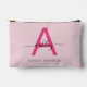 This accessory pouch exudes the epitome of elegance and personal charm with its vibrant hot pink monogram design. Tailored for the discerning individual, it provides a chic and practical solution for storing cosmetics, travel essentials, or small valuables. Crafted from durable fabric and finished with a sleek zipper, this pouch not only keeps your belongings secure but also makes a sophisticated style statement. Perfect for the modern woman who appreciates both function and form, this pouch adds a personal touch of luxury to everyday accessories.