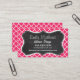 Hot Pink Moroccan Quatrefoil; Chalkboard look Business Card