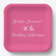 Hot Pink, Name, 90th Birthday Party Simple Square Paper Plate