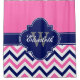 Hot Pink Navy Blue LG Chevron 1ICBR Name Monogram Shower Curtain