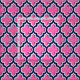 Custom Fabric: Navy Blue, White Moroccan Quatrefoil Trellis Pattern #5DS on a Hot Pink Background