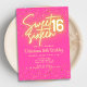 Sweet Sixteen birthday party design in bright hot pink with neon glow and faux gold glitter.