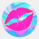 Hot Pink Ombre Lipstick Kiss Iridescent Ombre Classic Round Sticker