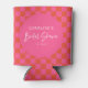 Hot Pink Orange Retro Chequerboard Bridal Shower Can Cooler