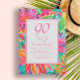 Bold and colourful hot pink, orange, and green watercolor floral 90th birthday party invitation for her. Contact me for assistance with your customisations or to request additional matching or coordinating Zazzle products for your event.