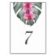 Hot Pink Orchid on Monstera Tropical Wedding Table Number