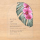 Bring your dream wedding vision to life with this uniquely beautiful arched acrylic tropical wedding invitation design. It features a trio of vibrant hot pink - fuchsia orchids and a beautiful monstera leaf in soft watercolors. The design is both simple and elegant with a minimalist look energised by the tropical botanical elements. This invitation is a wonderful choice for coastal weddings, destination weddings or even city weddings that use a magical tropical theme.