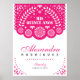 Start your quinceañera off right with this traditional papel picado invitation. The design is done with paper cutout of flowers and other details. Personalize with your name and the date of the party. Available in red, burgundy, royal blue, emerald green, and hot pink. Coordinating invitation and party items available.