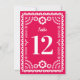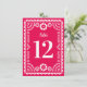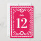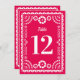 This beautiful papel picado inspired wedding table number card features an ornate frame in white, a colourful hot pink background, and festive typography. This elegant yet modern design is a fabulous choice for a Latinx wedding, rehearsal dinner, engagement party, or bridal shower. See coordinating items in the collection...