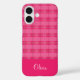 Step up your style game with this hot pink plaid phone case. Your iPhone (16) will give off Barbiecore vibes. This plaid design feature hot pink and lime green colours in a crossover pattern.