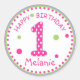 Hot Pink Polka Dot Happy Birthday Number 1 Classic Round Sticker