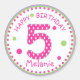 Hot Pink Polka Dot Happy Birthday Number 5 Classic Round Sticker