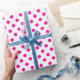 Hot Pink Polka Dot on White Medium Space Wrapping Paper