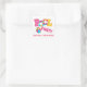 Square sticker can be used for many purposes. You can personalise to use on thank you gifts, or favours, can be used on outside of envelopes inviting people to your pool party. You can change the shape easily too. It has "Pool" in bright colours with tubes as the letter O. There's a bright beach ball underneath it.