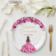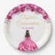 Hot Pink Princess Floral Quinceañera Paper Plate