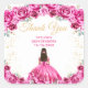 This elegant and glamourous Quinceañera sticker features a beautiful princess with dark hair in a hot pink ball gown. The text combines handwritten script and modern sans serif fonts for a classy and sophisticated look. The floral arrangements and gold confetti create the perfect blend of rustic and chic.