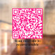 Customisable QR Code window cling, with a hot pink background. To generate a new QR code on the design, add your website URL or booking webpage in the " personalise this template" feature.