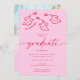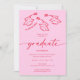 Hot Pink Red Hand-drawn Scrible Hats Graduation Invitation
