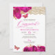 Hot Pink Roses and Lace Butterfly Quinceañera Invi Invitation
