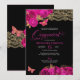 Hot Pink Roses and Lace Butterfly Quinceañera Invitation