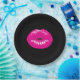 Hot Pink Shiny Lips on Black Paper Plate