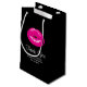 A thank you gift bag with a drawing of a pair of shiny pink feminine lips on a black background.