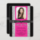 Sweet 16 party invitation with pretty hot pink on an elegant black and silver glitter background with beautiful shiny black bow. This beautiful hot pink glitter sweet sixteen birthday party invitation is easily customised with your photo and event details in the font style and colour, and wording of your choice. You can also change the background colour on this elegant hot pink graduation announcement.