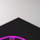 A hot pink skull and crossbone illustration with a heart shaped eyepatch. Black background.