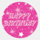 Hot Pink Sparkle Stars Happy Birthday Party Classic Round Sticker