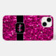 Hot pink sparkles faux glitter Monogram Case-Mate iPhone Case