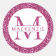 Deep Raspberry or Magenta Pink Personalised Envelope Seal Sticker with a monogram initial and custom printed name in the middle of a pink glitter and white circle. The design coordinates with Paper Grape Zazzle Designer's Hot Pink Glitter Birthday and Mitzvah Invitation suite.