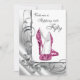 Elegant hot pink glitter high heel shoes birthday party invitation with pretty high heel shoes on a silver swirl background. This beautiful womans silver and hot pink birthday party invitation is easily customised for your event by adding your event details, font style, font size & colour, and wording. This is a printed design with no real glitter, jewels, etc.