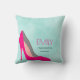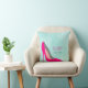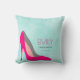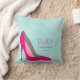 A personalised pillow with a hot pink stiletto shoe. Set on a mint green watercolor background. Chic and glamourous. Personalise with a name, with the word Fashionista below, which can also be personalised with a nickname, title, last name etc...