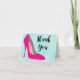 A thank you note card with a hot pink stiletto shoe. Set on a mint green watercolor background. Chic and glamourous.